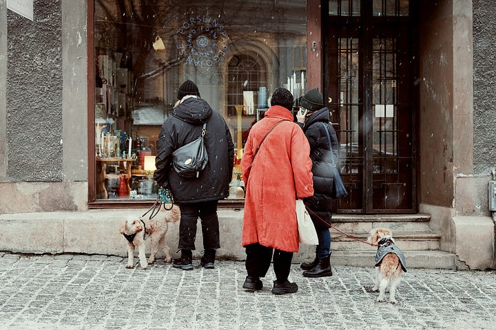 It’s so rare for someone to just come up to you in this city and start talking. I can count on one hand the number of times it’s happened in the twenty-six years I’ve lived here. Sure, I exchange a casual “Hej hej” with other dog walkers in Täby. But this is different.