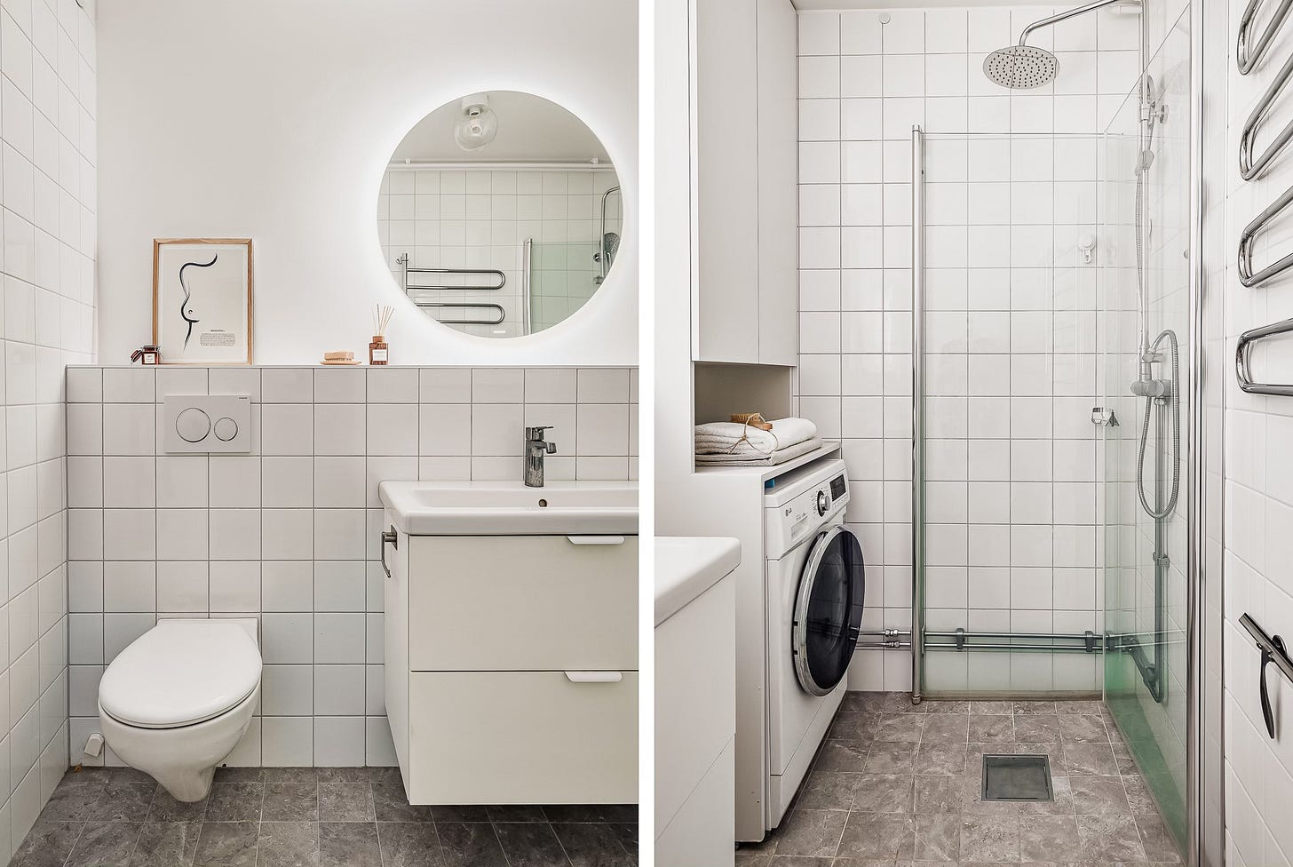 I start in the bathroom, removing the towels, the toilet brush, the loo roll. I’ve done this so many times it’s almost second nature now, checking the angles, adjusting the focal length, making sure everything lines up. Then I turn off all the lights in the apartment. I want as much natural light as possible.